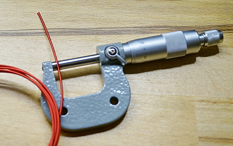 Um es noch ein wenig schwieriger zu machen ... Eine Micrometerschraube hat man ursprünglich zu dem Zweck erfunden, unnachgiebige Bleche zu messen. Wenn man das geriffelte Rädchen der Stellschraube langsam zu dreht, dann stoppt ab einem gewissen Druck eine feine, mechanische Ratsche diesen Vorgang und lässt das Stellrädchen ins Leere laufen. Ein feiner, dünner Kupferdraht oder weiche Materialien werden durch die Mess-Backen zu diesem Zeitpunkt bereits zusammengedrückt und gequetscht. Zudem ist der Druck der Ratsche nicht genormt. Mit zwei Micrometerschrauben (auch der 50 Euro-Klasse) erhält man auch zwei verschiedene Ergebnisse. Die Messbacken dürften eigentlich nur mit einem "Hauch von Nichts" (berührungslos durch Laser) am Meßobjekt anliegen.